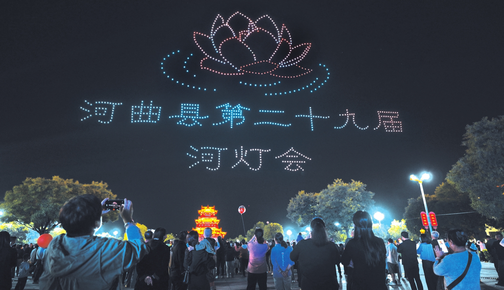 為期三天的無人機(jī)表演,創(chuàng)新采用3D動態(tài)編隊技術(shù),通過40組高精度畫面切換,將河曲的地理標(biāo)志、文化符號與時代精神深度融合,實現(xiàn)“一幕一主題、幀幀皆故事”的沉浸式體驗,以“科技+文旅”讓市民和游客領(lǐng)略大美河曲的獨(dú)特魅力。市民張一婷說:“能在家門口看到這么高水平的無人機(jī)表演,挺自豪的。這種創(chuàng)新的‘文化表達(dá)’方式將我們家鄉(xiāng)的故事用高科技手段‘寫’在了夜空這張畫卷上。這說明家鄉(xiāng)的發(fā)展不只在經(jīng)濟(jì)方面,更是一種文化上的自信與創(chuàng)新。河燈與無人機(jī)燈光天地呼應(yīng),是傳統(tǒng)與現(xiàn)代的完美融合?!?/p>