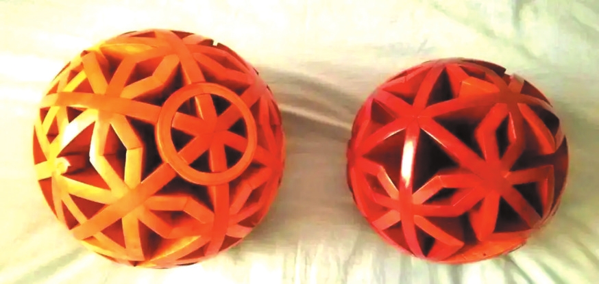 “沒用一顆釘子、一滴膠水,我們利用了榫卯技藝,讓108塊形狀各異的木構件緊密連接,構成一個鏤空的地球,祈盼世界團結、人類和平?!薄堕久挠钪妗肪巹?、忻州王爾文玩(魯班鎖、孔明鎖)(以下簡稱“王爾文玩”)傳統(tǒng)木作技藝非物質(zhì)文化遺產(chǎn)代表性傳承人趙永功說。