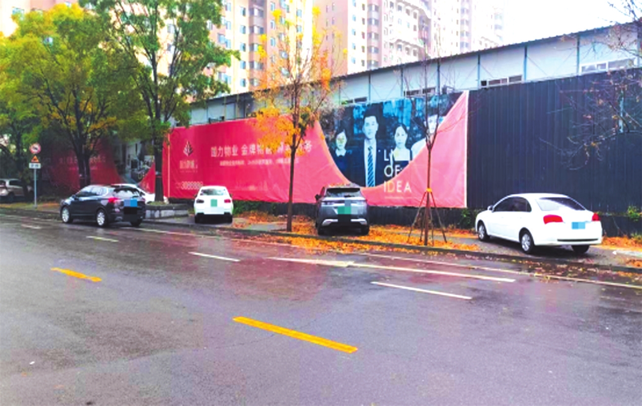 忻府區(qū)福慧路國(guó)力新城三期東側(cè)車輛占用人行通道。