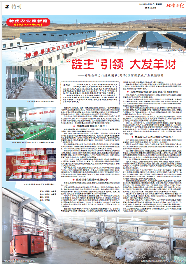 初春時(shí)節(jié),萬(wàn)象更新。當(dāng)?shù)谝豢|晨光鋪灑在神池縣東湖鄉(xiāng),一幅熱氣騰騰的現(xiàn)代肉羊產(chǎn)業(yè)發(fā)展圖景正徐徐展開(kāi)。天牧生物、東元農(nóng)牧、神龍牧生物、忻牧生物四家龍頭企業(yè)緊密協(xié)同,將種源繁育、生態(tài)養(yǎng)殖、飼草保障、精深加工、防疫環(huán)保等串成了閉環(huán)完整的肉羊全產(chǎn)業(yè)鏈,讓神池傳統(tǒng)養(yǎng)羊業(yè)在新時(shí)代煥發(fā)出強(qiáng)勁生機(jī)。