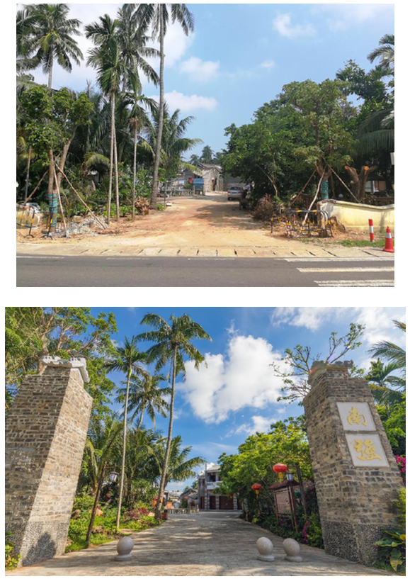 南強村口改造前后 整村規(guī)劃,提升鄉(xiāng)村價值 以“南洋鄉(xiāng)愁文化”為核心的鄉(xiāng)村旅游資源,改善村莊生態(tài)、提升村民生產(chǎn)生活環(huán)境。 在“修舊如舊”的建設(shè)理念基礎(chǔ)上,南強村修繕鄉(xiāng)村基礎(chǔ)設(shè)施、完善鄉(xiāng)村產(chǎn)業(yè)業(yè)態(tài)。 重點打造“南強客廳”、“鳳凰客棧”、“鳳鳴書吧”和“鳳凰公社”等建筑,延續(xù)鄉(xiāng)村中西合璧的古宅文化,帶動鄉(xiāng)村旅游產(chǎn)業(yè)。