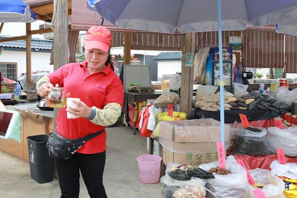 村民陸秀媚的攤位琳瑯滿目,擺得滿滿當(dāng)當(dāng)。求是記者 張芯蕊 攝