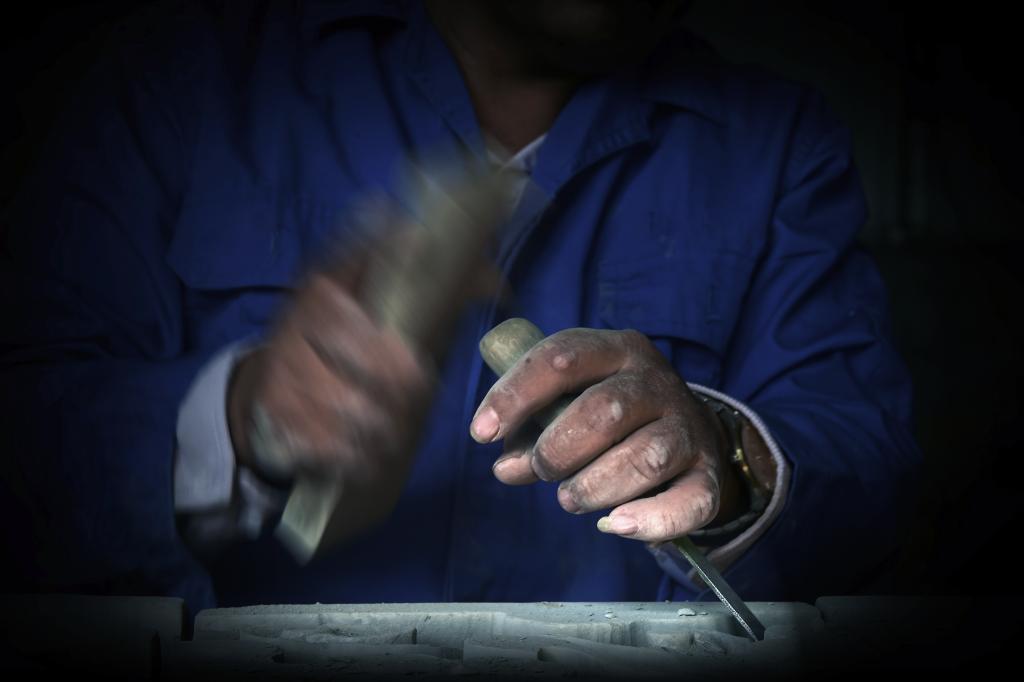 說(shuō)起磚雕的未來(lái),王鎖貴憂(yōu)心忡忡?!巴_(tái)磚雕”——這個(gè)在王鎖貴手上“復(fù)活”的傳統(tǒng)技藝,現(xiàn)在面臨后繼無(wú)人的窘境。王鎖貴廠子里的工人,都在45歲以上。年輕人不想學(xué),主要是“嫌臟”——雕刻時(shí)青磚粉塵彌漫,還得隨雕隨用嘴吹,現(xiàn)在看來(lái),還沒(méi)有很好的解決辦法。