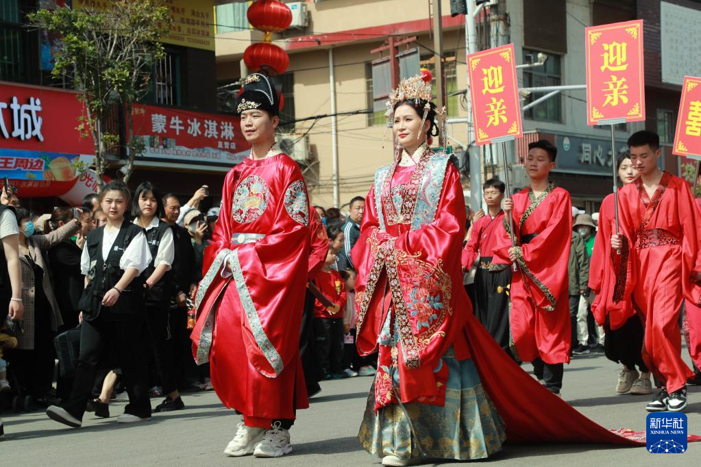 當(dāng)日,河南省葉縣首屆漢服文化節(jié)在縣城葉園開幕。漢服巡游、漢風(fēng)國韻演出等豐富多彩的活動,吸引了眾多游客和市民前來觀看,感受漢服文化的魅力。新華社發(fā)(何五昌攝)