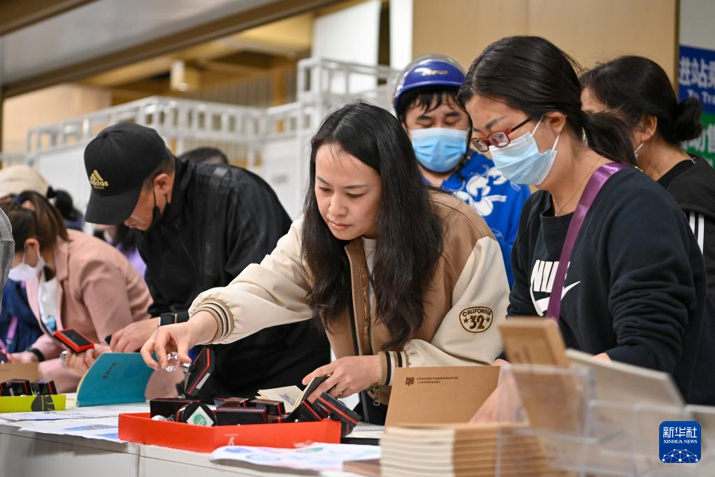 5月9日,在太原地鐵2號(hào)線大南門(mén)站,市民在第三屆“印記太原”文化創(chuàng)意設(shè)計(jì)展上體驗(yàn)古城游集章活動(dòng)。