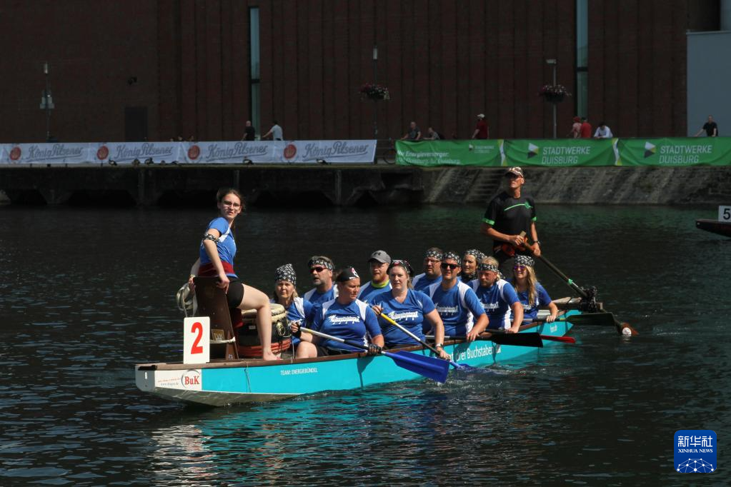 6月10日,人們在德國杜伊斯堡參加趣味龍舟賽。新華社記者 單瑋怡 攝?