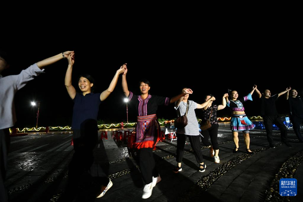 9月5日,在梧州市蒼梧縣六堡鎮(zhèn)山坪村同心廣場(chǎng),各族干部群眾在篝火晚會(huì)上跳“民族團(tuán)結(jié)舞”。
