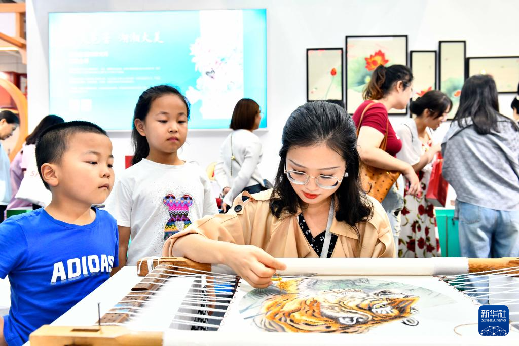 9月16日,在山東國際會展中心,來自湖南的非遺傳承人現(xiàn)場展示湘繡技藝。