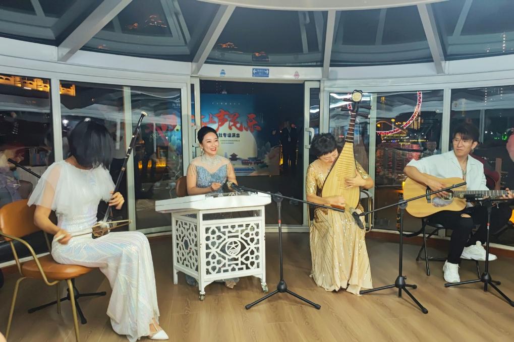 這是天津海河游船上舉行的“海上聲民樂”演出。新華社記者 宋瑞 攝 夜幕降臨,華燈初上,海河的觀光游船上,“海上聲民樂”中秋專場演出,以流動(dòng)的海河為舞臺(tái),通過音樂之韻傳遞傳統(tǒng)文化之美,邀市民游客共度佳節(jié)。 “民樂是我們中華傳統(tǒng)文化很重要的一部分。在音樂的‘陪伴’下,孩子乘船游玩的同時(shí)耳濡目染我們優(yōu)秀的音樂文化。”游客朱女士說。 “雙節(jié)”期間,海河游船推出民樂演出專場、清吧航班駐唱演出等表演形式,給游客提供了更多選擇。“8天節(jié)假日,我們預(yù)計(jì)累計(jì)接待游客超過12萬人次?!碧旖蚪蚵煤:佑未煞萦邢薰臼袌鰻I銷部部長何秋禹興奮地說。 此外,節(jié)日期間,天津博物館、天津美術(shù)館、周恩來鄧穎超紀(jì)念館、梁啟超紀(jì)念館等文化場館也奉上一批精品展覽,營造濃濃的節(jié)日文化氛圍。 越來越多市民游客愿意為文化體驗(yàn)“買單”,文化展演逐漸成為天津文旅產(chǎn)業(yè)發(fā)展的新亮點(diǎn)?!拔覀儠?huì)持續(xù)打造豐富的精品‘文化菜單’,滿足人民群眾日益增長的高質(zhì)量文化藝術(shù)生活需求,進(jìn)一步為城市活力和地方經(jīng)濟(jì)發(fā)展注入新動(dòng)能。”天津市文化和旅游局局長張劍說。 (責(zé)任編輯:盧相?。?/span> |