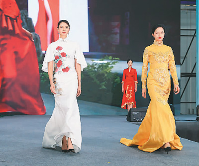 2023年9月,在安徽合肥舉辦的文化貿(mào)易投融資博覽會(huì)上,“徽幫裁縫·時(shí)光典藏非遺華服秀”正在展演。袁兵攝(人民圖片)