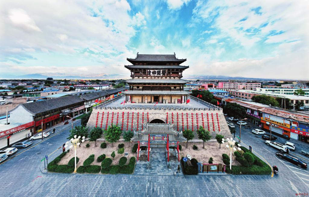 雁門關(guān)、寧武關(guān)、偏頭關(guān),是山西內(nèi)長城的三關(guān)。其中雁門關(guān)地處要沖,歷來是長城內(nèi)外兵家必爭之地。代縣古城因雁門關(guān)而生,因雁門關(guān)而聞名,城外有三十九堡十二聯(lián)城,城內(nèi)有關(guān)城、甕城,以及城墻上的十二座門樓、角樓,再加上城中的鼓樓、鐘樓,由此構(gòu)筑成龐大的軍事防御體系。邊靖樓地處古城中心,是整個三關(guān)防御體系的核心指揮部,這也正是一個州治所在地的鼓樓規(guī)模遠遠超過京師鼓樓規(guī)模的重要原因。