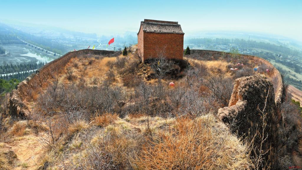 二是龍頭山兵寨。位于定襄縣受祿鄉(xiāng)上湯頭村東北的龍頭山上。堡寨依據(jù)地形呈橢圓形,南北走向,堡門南開,北端為高大的敵臺(tái),整體形似烏龜,敵臺(tái)似為龜首。堡墻外徑南北最長處有60米,東西最寬處有38米。堡墻為土筑,原外包石塊,后被扒掉,只存有堡北端不到2米長的一段。內(nèi)部的土墻四周完整,高約2-3米,厚60-100厘米。