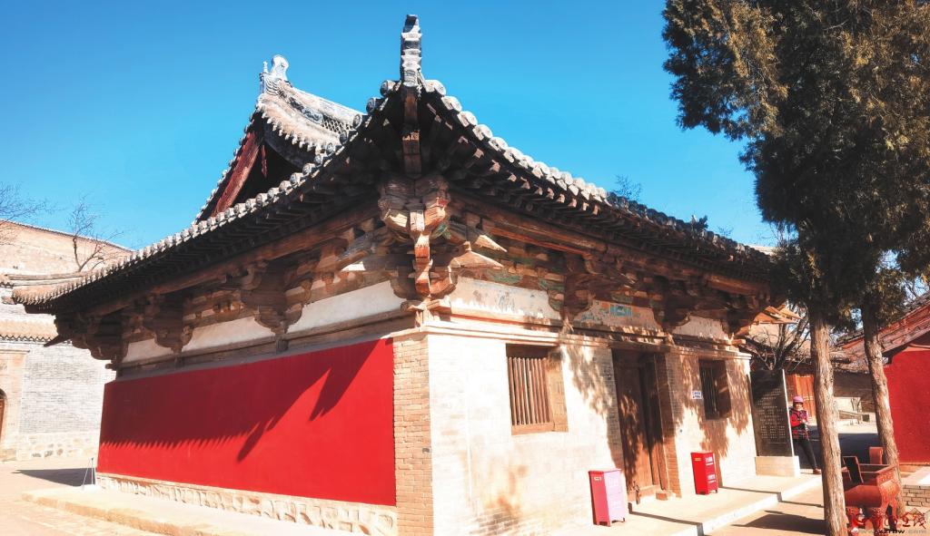 轉(zhuǎn)了一殿又一殿,看了一處又一處。唯獨沒見到一通廟碑,有些遺憾。問映月同學(xué),說被毀了。金洞寺亦稱金門寺,依地形而建,坐北朝南,其轉(zhuǎn)角殿主體大木構(gòu)件和結(jié)構(gòu)形制較為完整地保留了北宋中晚期的特點。
