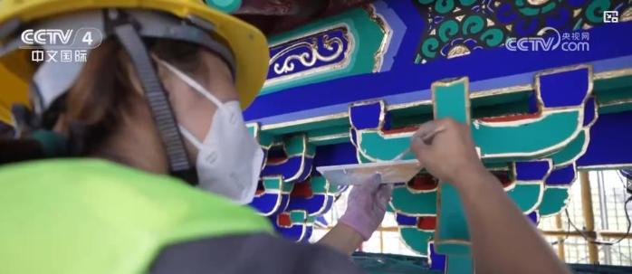 如今的北京中軸線構(gòu)建起了現(xiàn)代都市與歷史空間巧妙融合的城市景觀。北京中軸線上的前門五牌樓曾因常年風(fēng)吹日曬,導(dǎo)致油飾層開裂、失去華彩。2022年,古建油飾彩畫專家堅(jiān)持古法彩繪,對(duì)前門五牌樓進(jìn)行了翻新,令牌樓呈現(xiàn)出恢弘大氣的視覺效果。作為世界遺產(chǎn)的北京中軸線同時(shí)也是百姓日常工作生活的場景,這讓北京中軸線成為了“活遺產(chǎn)”。而在北京中軸線的最南端,重新復(fù)建的永定門如今已經(jīng)成為了百姓休閑和游客打卡的好去處。