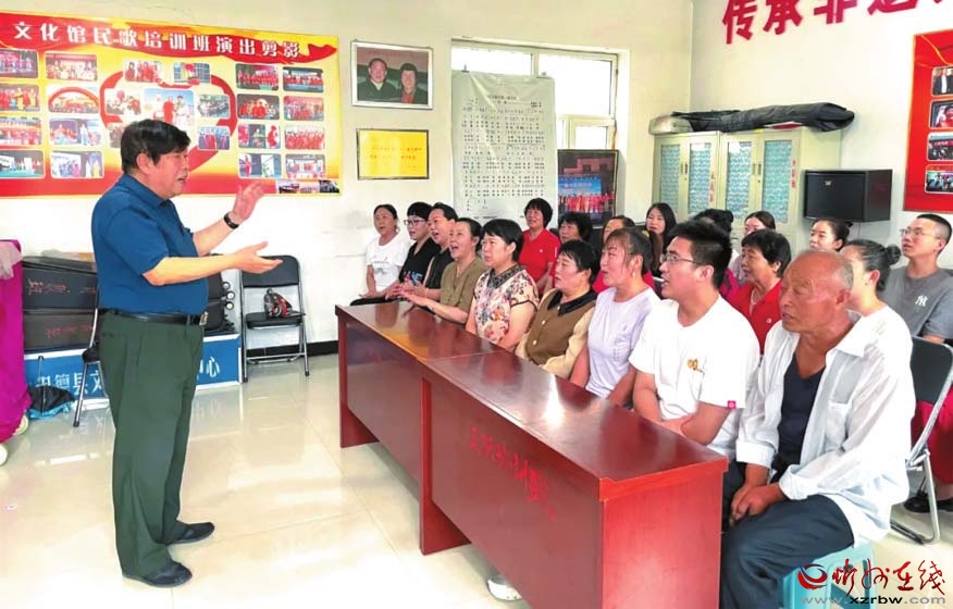 “保德是個好地方,百里飄棗香,黃河流水萬年長,秦晉好風(fēng)光……”每周一、三、五下午,總有悠揚的歌聲從保德縣文化館民歌培訓(xùn)中心傳出。因為對民歌的熱愛,這里聚集了一批來自各行各業(yè),身份背景各不相同的民歌愛好者。而現(xiàn)場教授唱歌的正是省級非物質(zhì)文化遺產(chǎn)項目代表性傳承人、被業(yè)界譽為“黃河之濱民歌王”“保德民歌活化石”的楊仲青老師。