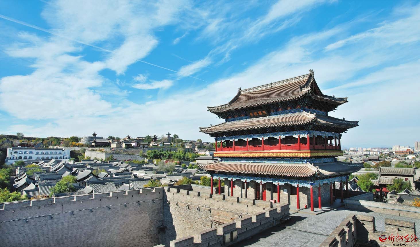 四門皆重建于明萬歷二十四年(1596年)。南門“景賢門”,城樓面闊七間,進(jìn)深四間,重檐歇山頂,四角飛檐,樓梯三層,構(gòu)思精巧,樓內(nèi)無柱,三層檐下正中懸掛“三關(guān)總要”匾額。東門“永豐門”,城樓匾額“獻(xiàn)佳合北”。東門到南北大街是東大街。西門“新興門”,城樓匾額“九峰雄峙”。西門通南北大街,古城原有略顯彎曲的西大街。