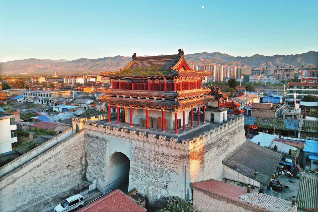 代州州城,趙武靈王胡服騎射置廣武縣,廣武,尚武擴(kuò)張也。廣武城在今代縣城西15里古城村,秦漢魏晉南北朝廣武縣治。東漢建武九年(33年),因王莽篡漢后,匈奴不斷侵?jǐn)_勾注以北,東漢光武帝劉秀暫棄陘北,南遷雁門郡郡治善無(王莽陰館)于太原郡廣武境內(nèi),在此筑城為郡治,稱上館城。建武二十六年(50年)驅(qū)走匈奴,恢復(fù)雁門郡舊土,郡民重歸本土。雁門郡郡治又從廣武上館城遷回陰館下館城。做了17年雁門郡郡城的代縣上館城,城和城名都保留下來。太原郡廣武縣治仍在廣武古城。東漢建安二十年(215年),析太原郡北部置新興郡,廣武縣劃歸雁門郡,仍治廣武古城。曹魏黃初二年(221年)因匈奴屢犯勾注山以北地帶,雁門郡治所由陰館遷于廣武城,從此改治“廣武”。晉懷帝永嘉四年(310年),劉琨徙馬邑、陰館、樓煩、繁峙、崞五縣于陘南,更立城邑,完全放棄了陘北之地。雁門郡遂完全進(jìn)入陘南。北魏置肆州后,肆州雁門郡只剩了廣武、原平兩縣,郡治廣武古城。到北魏孝明帝(515年—528年)時(shí),重建上館城,雁門郡郡治與廣武縣治皆遷于上館城,即今代縣城,廣武古城廢。北周肆州治從今忻州城遷于上館城中,隋文帝改肆州為代州,改廣武縣為雁門縣。代州領(lǐng)雁門、繁峙、崞、五臺四縣。明洪武六年,吉安侯陸亨、都指揮王臻以磚砌城。周圍八里一百八十五步,高三丈五尺,護(hù)城河池深二丈一尺,中有活水,四面故生蓮。洪武八年,復(fù)稱代州。門四,甕城各一,各建重樓、角樓四座,鋪舍五十,南無關(guān),東、西、北關(guān)土城各一。景泰、成化中,添筑東北二關(guān)城。歷代皆有修葺。州城四門:東熙和,沐東陽熙合和融;南迎薰,迎南方香薰之風(fēng);西康阜,喜康莊物阜民豐;北鎮(zhèn)朔,鎮(zhèn)朔方州境安寧。