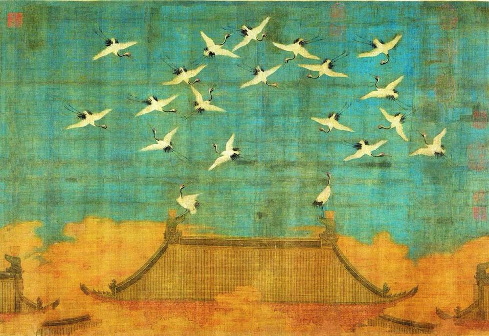 北宋政和二年(1112年)上元節(jié)次夕,天清氣朗,群鶴飛鳴,盤旋于宮殿上空,久久不肯離去。這讓宋徽宗趙佶產(chǎn)生了“仙鶴告瑞”的聯(lián)想,故欣然命筆,將目睹的這一幕繪于絹素之上,一幅千古名作《瑞鶴圖》就此誕生。在題畫詩中,趙佶以瘦金體記述了事件原委。他在詩中將群鶴與古籍中提及的祥鸞、赤雁相提并論,還特意強調了鶴與長生不老的關聯(lián),將它們與蓬萊仙山聯(lián)系在一起,指出其壽命能夠長達千年。雖然趙佶的祥瑞之愿難免落空,但鶴確實是一種長壽的動物。人工飼養(yǎng)的丹頂鶴能活到七十多歲,這相對于古人的平均壽命,實在是很可觀了。