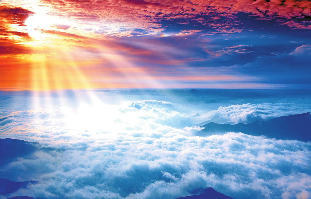 在海拔2796米的五臺山東臺頂,居高望遠(yuǎn),日出景象更加浩瀚壯闊,朝霞滿天,萬道金光射向大地,云海、雪峰、金殿、金像相互輝映。