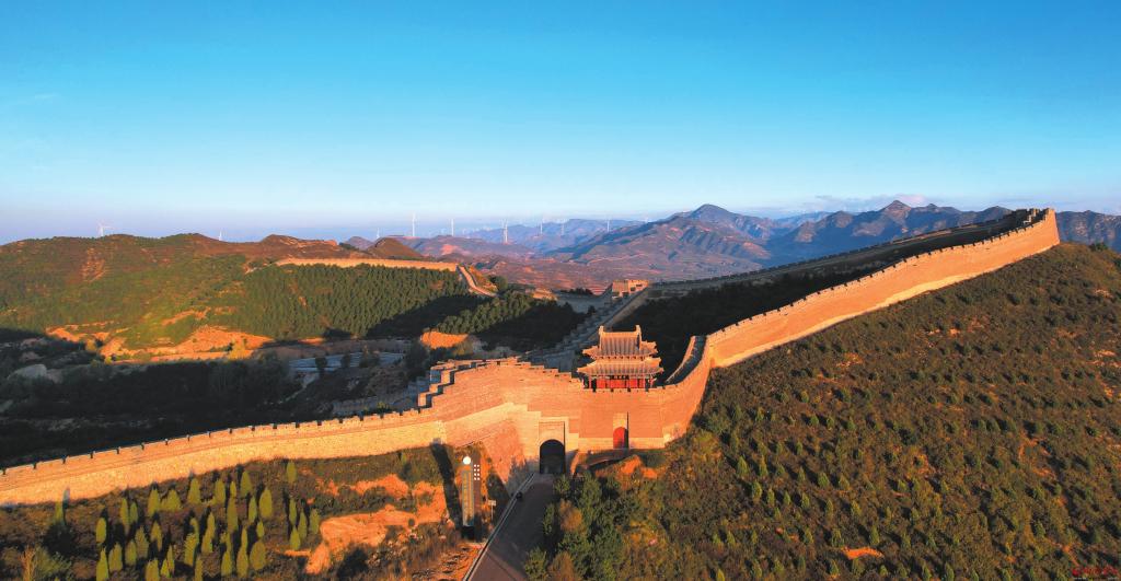 張存良攝 初冬時(shí)節(jié),天氣驟冷。 從繁峙縣砂河鎮(zhèn)出發(fā),向東行去,起初還是平川坦途,村落星布,風(fēng)電塔架遍布。車行不過半個(gè)時(shí)辰,景致便悄然換了模樣。崇山峻嶺間,道路曲曲折折。過了平型關(guān)村,向東北行去不遠(yuǎn),就看到前方山巒間,長城蜿蜒盤旋,平型關(guān)關(guān)樓聳立。 山腳下停好車,向山上爬去,沿途多是嶙峋的巖石與泛黃的灌木。新修的關(guān)墻感覺不是“躺在歷史里”的舊物,而是陡然站起來的蒼龍。青磚是洗過的深靛色,在夕陽下泛著鐵器似的冷光;垛口齊齊斬開天際線,像巨獸新磨的齒。關(guān)樓屹立于兩邊山脊的交匯處,長城一號公路穿過門洞,伸向遠(yuǎn)方。 站在長城上,一覽眾山小,景觀盡收眼底。向兩邊望去,山巒起伏,溝壑縱橫,一眼望不到邊。風(fēng)從北刮過來,發(fā)出嗚嗚的聲響。你仿佛能聽見,風(fēng)里夾雜著遙遠(yuǎn)的金鐵交鳴與戰(zhàn)馬嘶嘯的余響。因?yàn)檫@里的每一塊石頭,每一寸泥土,都曾被熱血浸染,被戰(zhàn)火灼燒。 平型關(guān)位于內(nèi)長城中部,東接倒馬關(guān)、紫荊關(guān)、居庸關(guān)內(nèi)三關(guān),西連雁門關(guān)、寧武關(guān)、偏頭關(guān)外三關(guān),南經(jīng)牛幫口順太行山交娘子關(guān)、馬嶺關(guān)、黃澤關(guān)?!蹲x史方輿紀(jì)要》載:平型關(guān)“東控紫荊,西轄雁門,與團(tuán)城子堡分管內(nèi)邊百二十四里”。這里是連通河北的要道,防控外敵的雄關(guān)。平型關(guān)因其形如瓶而得名。
