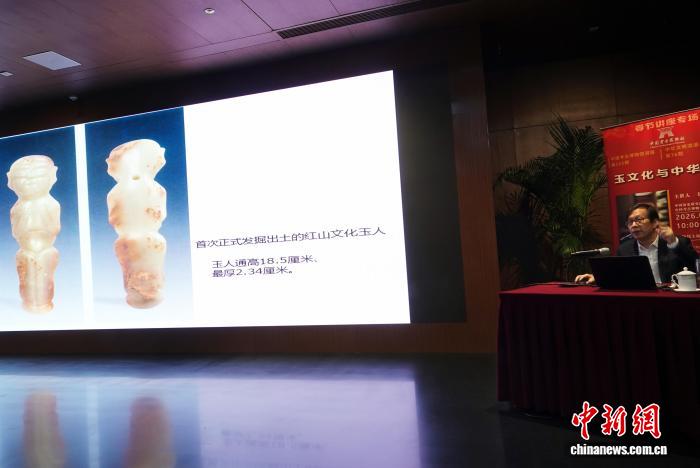 2月22日,中國考古博物館春節(jié)講座專場,劉國祥研究員作“玉文化與中華文明”主題學術報告,介紹紅山文化玉人。中新網(wǎng)記者 孫自法 攝