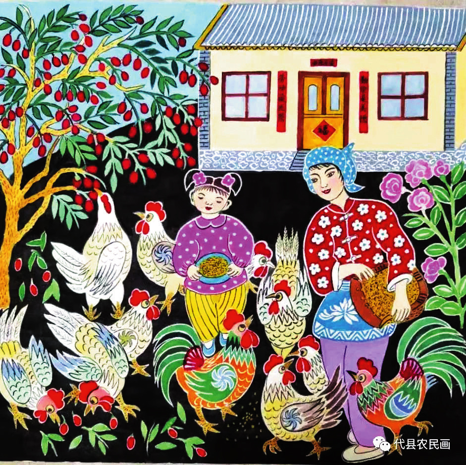 中國歷史文化名城代縣,文化底蘊深厚,民俗傳統(tǒng)技藝精巧別致,1988年和2008年先后被文化部授予“中國民間繪畫畫鄉(xiāng)”“中國民間文化藝術(shù)之鄉(xiāng)”。該縣的農(nóng)民畫早在上世紀(jì)80年代初就在全國產(chǎn)生過較大影響,之后經(jīng)歷了一段低迷期。近年來在代縣農(nóng)民畫促進會的推動之下,農(nóng)民畫又重新煥發(fā)出耀眼的光彩。先后涌現(xiàn)出多位畫家,其中尤以丁全愛、戴翠平、祁磊、賈永花、郎冬梅等18位女畫家組陣的雁門巾幗,在多年鉆研繪畫技巧的基礎(chǔ)上,創(chuàng)作出一幅幅特色鮮明、獨具匠心的畫作,成為閃耀三晉大地的矩陣,為傳承、弘揚雁門文化做出了新貢獻。