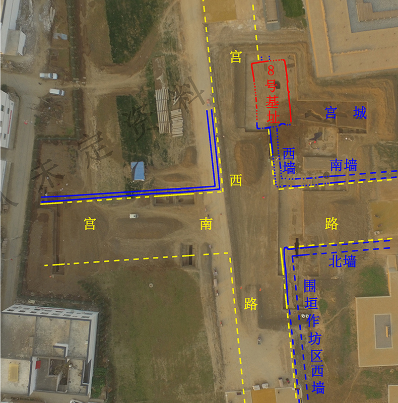 二里頭都城中心區(qū)的多網(wǎng)格式布局示意。匯報(bào)者供圖 河南偃師二里頭遺址中心區(qū)“九宮格”式布局、“井”字形主干道路網(wǎng)絡(luò)面貌更加清晰,新發(fā)現(xiàn)宮殿區(qū)南、北兩側(cè)道路自宮西路向西延伸400余米,在宮西路以西新發(fā)現(xiàn)一條南北向的道路,道路兩側(cè)有墻垣,將二里頭遺址劃分為多個(gè)方正、規(guī)整的網(wǎng)格區(qū)域,多個(gè)網(wǎng)格內(nèi)均曾發(fā)現(xiàn)不同等級(jí)的建筑基址和墓葬,顯示出分區(qū)而居、區(qū)外設(shè)墻、居葬合一的結(jié)構(gòu)布局。