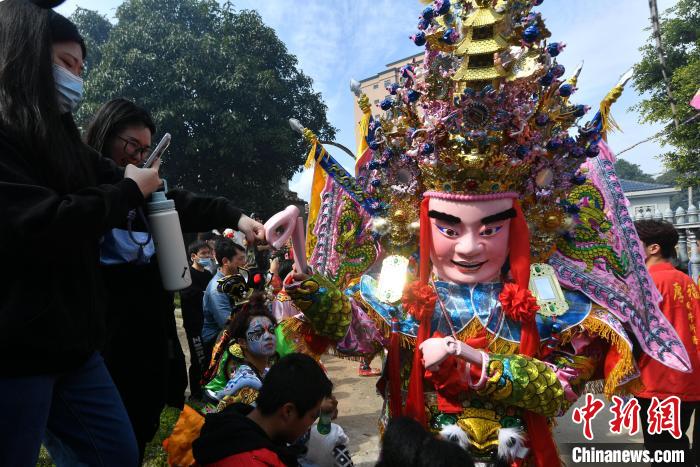 中新網(wǎng)福州2月19日電 (葉秋云)“咚咚咚……”19日上午,一陣陣鑼鼓聲從僑鄉(xiāng)福建省福州市長樂區(qū)潭頭鎮(zhèn)厚福村傳出,一場傳統(tǒng)游神民俗活動在此舉行,來自海內(nèi)外的游客紛紛舉起手機和相機拍照留影。