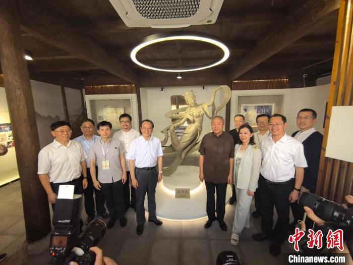 “資華筠舞蹈藝術館”開館儀式16日在浙江德清新市古鎮(zhèn)舉行。圖為參加開館儀式的嘉賓為資華筠雕塑揭幕。(主辦方供圖)