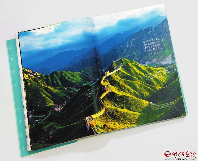 在視覺呈現(xiàn)上,為了追求最佳的閱讀體驗(yàn),書中每一篇文章都精雕細(xì)琢,每一張攝影作品選用也極其嚴(yán)苛。要求文字內(nèi)容與圖片內(nèi)容都要一一對應(yīng),可以說每一個(gè)對開頁面,都是一次全新的設(shè)計(jì)。就這樣,把忻州的美好風(fēng)光同當(dāng)?shù)氐娜宋臍v史有機(jī)地融合在一起,給人以賞心悅目的享受和豐富知識(shí)的熏陶,讓人既覺得身臨其境,又心馳神往。