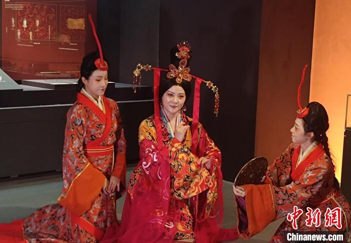 展覽現(xiàn)場的情景秀表演,再現(xiàn)“漁陽王后”(中)的生活日常。中新網(wǎng)記者 鄧霞 攝