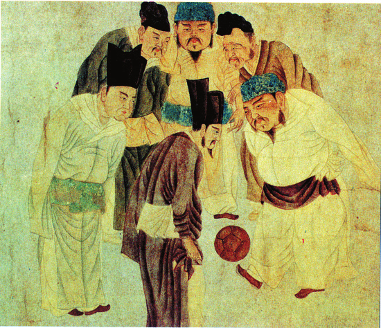 兩宋時期,鞠從八片堅皮縫制發(fā)展成十二片香皮砌成,且“不漏線角”,重量“正重十二兩”,外形“硬湊十分圓”。工藝的改進(jìn)推動了球技的發(fā)展,出現(xiàn)了高俅、柳三復(fù)等憑借高超球技獲得官位的蹴鞠高手。