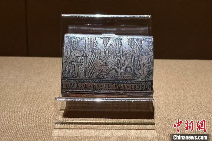 展覽展出的1898年印有銘文的銀質(zhì)煙盒,小巧實用,上面刻有“1898”及亞美尼亞文字“阿爾塔什斯”“薩特尼克”。據(jù)悉,阿爾塔什斯王朝的建立者阿爾塔什斯一世和阿蘭王女兒薩特尼克公主的故事,可追溯至公元前2世紀,他們的婚姻被視為不同民族和文化統(tǒng)一的象征。