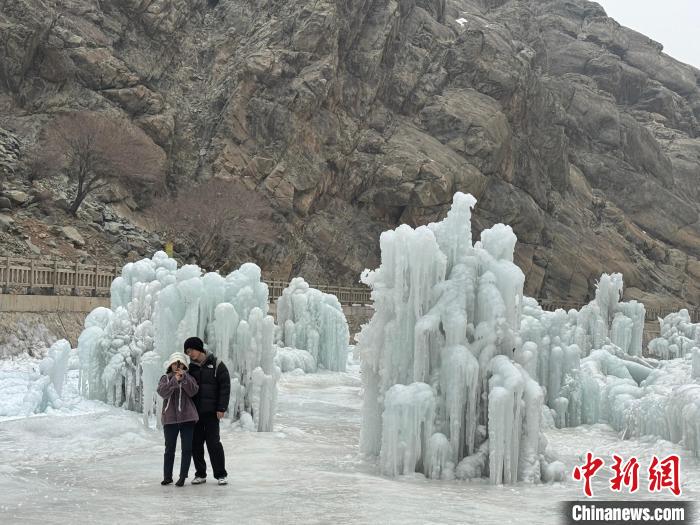 游客在賀蘭山巖畫景區(qū)內(nèi)的冰瀑布景觀群打卡拍照。 中新網(wǎng)記者 李佩珊 攝 其中,首屆銀川花博園山海燈會推出5大核心68組炫麗彩燈,點亮花博園新春之夜。銀川老城首屆海寶福燈會以“逛公園、賞花燈、品民俗、吃美食、看大戲、過大年”為主題,在海寶公園用花燈會點亮銀川文化旅游新地標。銀川市第十屆秦腔藝術節(jié)邀請多位“梅花獎”得主精彩開唱,頂流秦腔演員安萬來銀演出4場,吸引戲迷5萬余人,線上直播觀看人數(shù)超150萬人次。銀川市線上非遺年貨節(jié)、非遺進商圈等系列活動將非遺技藝與直播帶貨、舞臺演藝、年貨大集等結合,展現(xiàn)別樣新春慶典。銀川劇院推出沉浸經(jīng)典浪漫音樂會《像初雪般靠近》、俄羅斯莫斯科芭蕾舞團《天鵝湖》、親子童話舞臺劇《白雪公主》《西游記之大鬧天宮》《奶龍·可愛大戰(zhàn)》等演出,讓市民在家門口享受文化視覺盛宴。 同時,銀川市77家文化場館、21家博物館免首道門票,并推出內(nèi)容豐富、寓教于樂的新春惠民活動,吸引市民游客走出家門過大年。