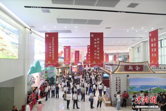 圖為9月23日,江西贛州于都縣,民族題材書(shū)畫(huà)攝影作品展和鑄牢中華民族共同體意識(shí)圖片展現(xiàn)場(chǎng)。劉力鑫 攝