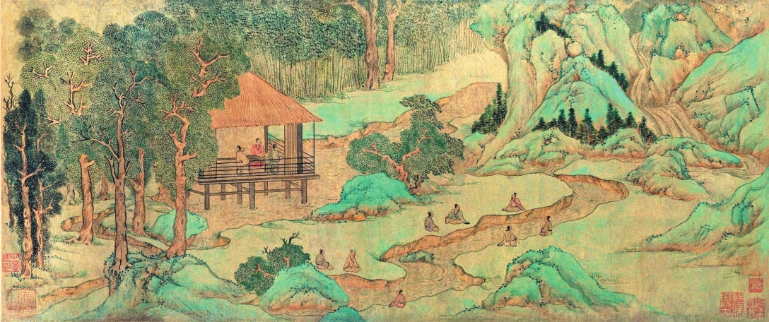 自宋代起,商賈或官宦常邀請(qǐng)好友、文人、畫師于亭中雅聚,作飲酒、和詩、品茗、撫琴的風(fēng)雅活動(dòng)?!锻ひ分惺珍浟税儆嗥び?,其中就有王羲之《蘭亭集序》、歐陽修《醉翁亭記》《豐樂亭記》、蘇軾《放鶴亭記》等。刺史歐陽修與民同樂:“俯仰左右,顧而樂之。于是疏泉鑿石,辟地以為亭,而與滁人往游其間。”亭成為他表達(dá)人生追求、人格志向的物象,而亭記描述的內(nèi)容也已遠(yuǎn)超建筑物本身。亭子的存在不僅是為觀景、停歇、雅集,文人的喜好與情感,也讓亭子逐漸成為一種顯著的文化符號(hào)。