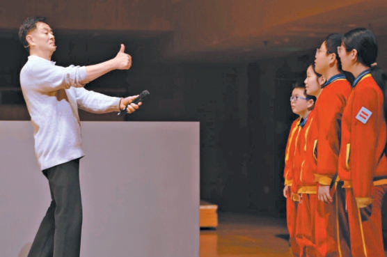 現(xiàn)場(chǎng)互動(dòng)環(huán)節(jié)更是高潮迭起。多位青少年登臺(tái)朗誦《木蘭辭》,濮存昕始終耐心傾聽,不時(shí)點(diǎn)頭稱贊:“很好!肢體再放松點(diǎn),聲音可以再大點(diǎn)!”他總是先肯定孩子們的“天然天真”,再以專業(yè)眼光指出可提升之處,親自示范如何通過技術(shù)訓(xùn)練達(dá)到更自由的表達(dá)。這種既保護(hù)本真、又引導(dǎo)提升的教學(xué)理念,正是他反復(fù)強(qiáng)調(diào)的“平衡技巧訓(xùn)練與個(gè)性表達(dá),避免陷入機(jī)械化表演”的生動(dòng)實(shí)踐。