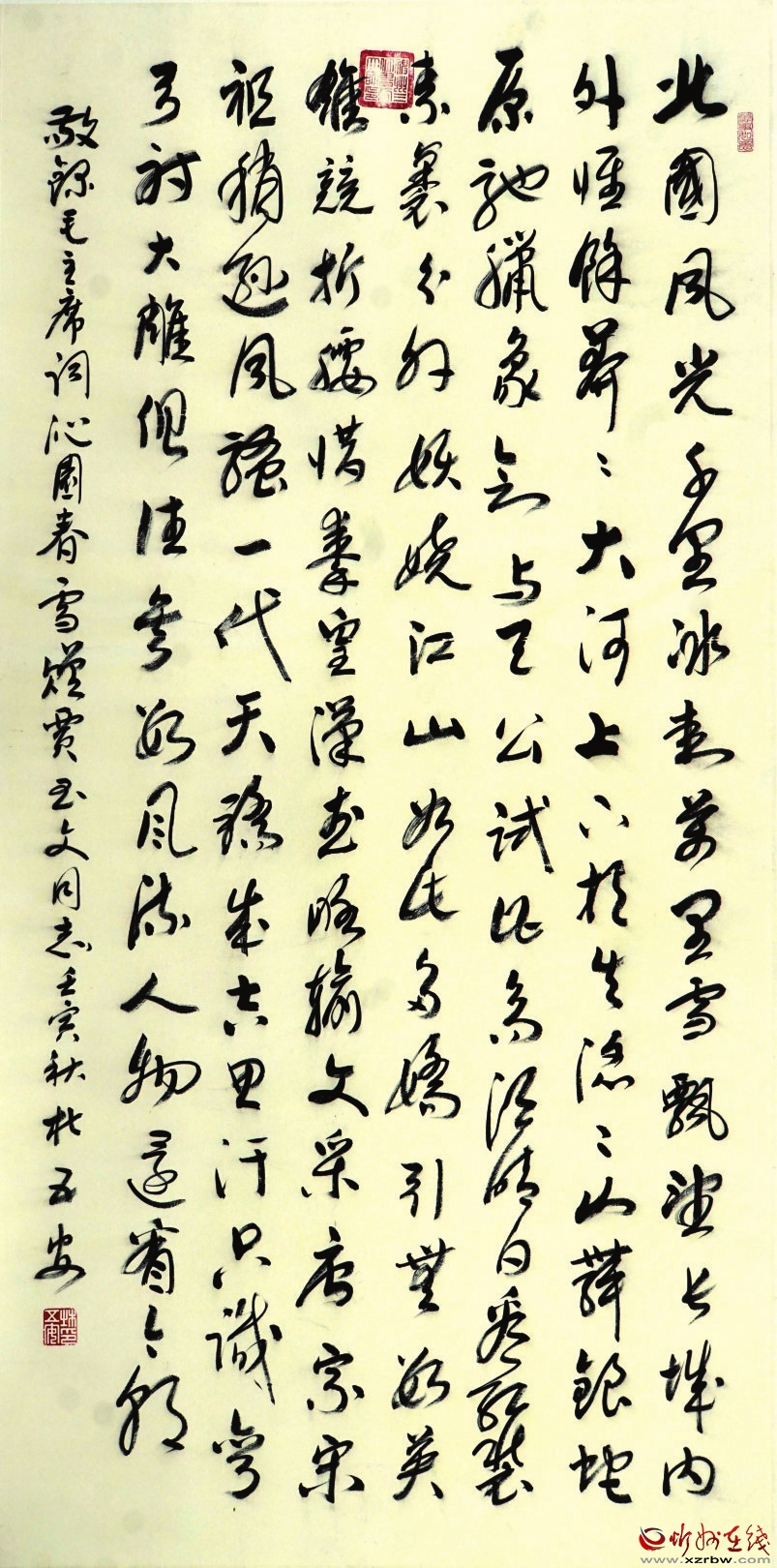 張 海 書 前 言 5月19日,“相約翠峰”——趙家溝寫生基地揭牌儀式暨首屆全國百名書畫家作品邀請展在河曲縣沙泉鎮(zhèn)趙家溝村舉行。趙家溝寫生基地是一個以地域為依托、生態(tài)為基石、創(chuàng)意為靈魂的鄉(xiāng)村振興示范創(chuàng)新項目。目前,國家畫院、清華大學美術院、首都師范大學、天津畫院等近20家院校在該基地掛牌。 本次書畫展得到了全國眾多書畫名家的積極參與和支持。中書協(xié)主席孫曉云女士、中書協(xié)名譽主席張海先生、國家畫院院長盧禹舜先生都有作品展出。本次展覽體現(xiàn)了中國當代書法繪畫專業(yè)之水準,為趙家溝翠峰山生態(tài)文化旅游的開發(fā)建設起了引領、示范、宣傳、促進作用。 本報精選部分書畫作品刊發(fā),以饗讀者。 (責任編輯:盧相?。?/span> |