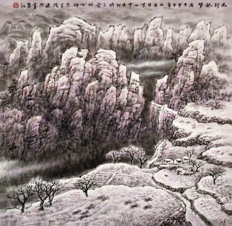 周建國對中國山水畫有著獨(dú)特見解,出版過畫集《中國美術(shù)名家精品鑒賞·周建國作品集》。他的創(chuàng)作之路主要分為兩個時期,前期追求中西融合,后期則回歸傳統(tǒng)。前期作品《曉月》《古原除夕》《月色》等,多取材于黃土高原,真切流露出其對黃土地的深情厚愛:早上飄起的炊煙演繹著百姓的勤勞,喧鬧的腰鼓彰顯著鄉(xiāng)民熱愛生活的豪情,晨起上課的學(xué)生更是承載著當(dāng)?shù)厝藵M滿的希望。周建國將黃土地上的一草一木皆升華為獨(dú)特且富有個性的生命體,畫面處理側(cè)重將西方油畫的光影巧妙融入作品,寓動于靜,動靜相宜,彰顯“高貴的單純,靜穆的偉大”的內(nèi)在張力。同時將傳統(tǒng)山水繪畫的造型、空間結(jié)構(gòu)、筆法設(shè)色皆進(jìn)行改變——黃土溝壑的幾何化處理、筆墨色調(diào)的反復(fù)拿捏、耐人尋味的空間布局,都體現(xiàn)了其特殊的創(chuàng)作理念。相較前期,周建國后期的作品更加注重對內(nèi)在美的挖掘,如《風(fēng)月同天》《家園》《和諧家園》《生息之地》《太行月色》等代表作品,表達(dá)對祖國山河大川的熱愛,走“外師造化,中得心源”之道,畫風(fēng)趨向率真,試圖突破中國山水繪畫的表象審美,追尋深層意義的表達(dá)。