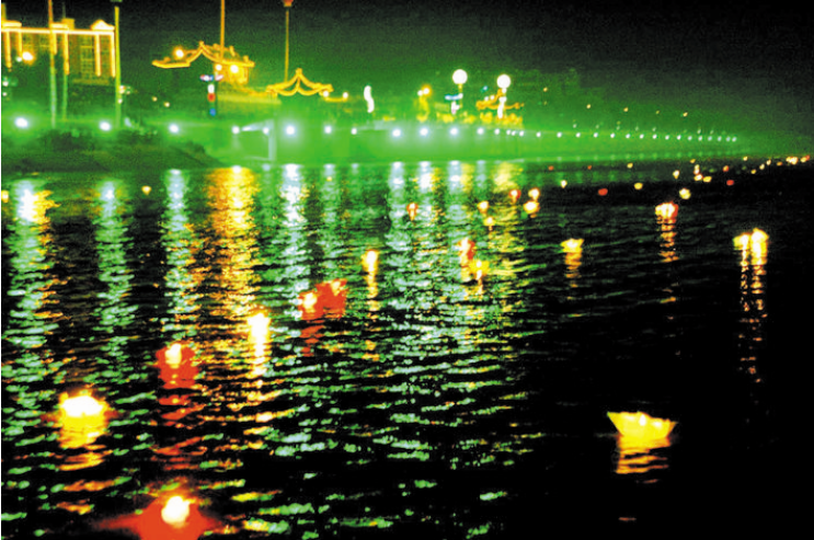 中元節(jié)這一天也有放河燈的習(xí)俗,最早源于印度佛教,傳入中國,是由寺院興起,起初有盂蘭盆會,在寺院里,誦經(jīng)供食,焚化紙船,謂之法船,可以“渡出冥孤獨之魂”,也是一種宗教儀式。后來這種形式,逐漸傳入民間社會,有了在河流中放河燈的習(xí)俗。試想天上人間,天上明月高空,繁星點點,地下一排排的紙船,在暗夜的黃河流水中猶如萬點螢光,向著遙遠(yuǎn)的神秘方向漂流,讓人產(chǎn)生一種無限的想象,因此,在中元節(jié)放河燈,就是自己和心靈的一種對話,也是活著的人們對逝去的人們的一種懷念方式。當(dāng)然河曲河燈節(jié),在祭祖、祭禹的同時,也加入了特定群體。那些在黃河水患中離去的人,那些在戰(zhàn)亂中逝去的人,那些在走西口謀生中失蹤的人,都成為被祭奠的亡靈,體現(xiàn)了其節(jié)日的地域性。