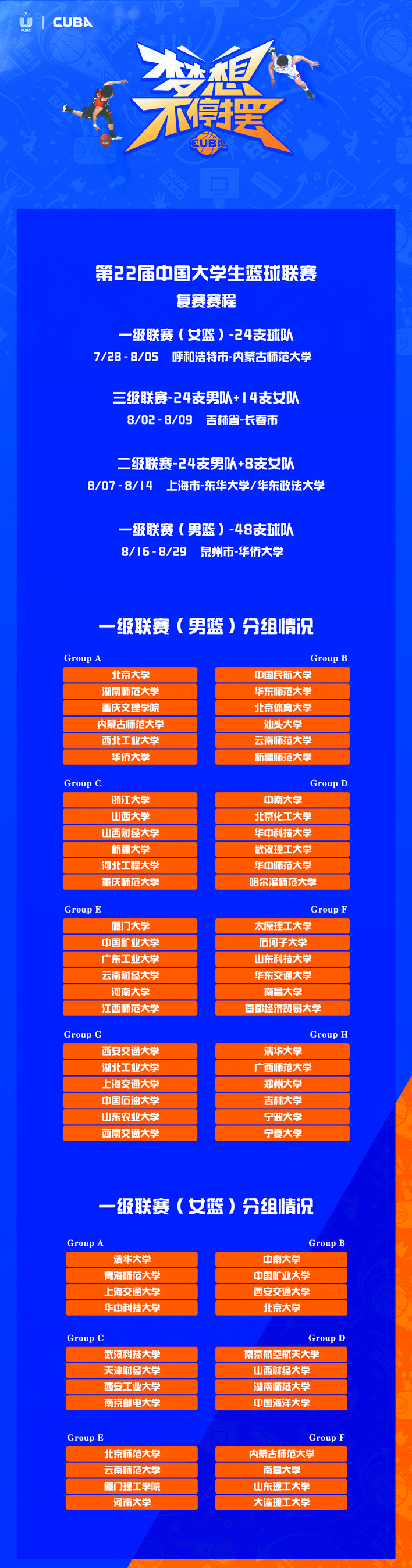 和職業(yè)聯(lián)賽不同,從決定復(fù)賽到打完決賽,留給本賽季CUBA只有不到兩個(gè)月的時(shí)間。在這種情況下聯(lián)賽組委會(huì)緊急調(diào)整,需要在確保賽事安全、符合防疫規(guī)定的前提下,設(shè)計(jì)一個(gè)精彩、科學(xué)的賽程,讓本屆畢業(yè)生順利完賽、不留遺憾。