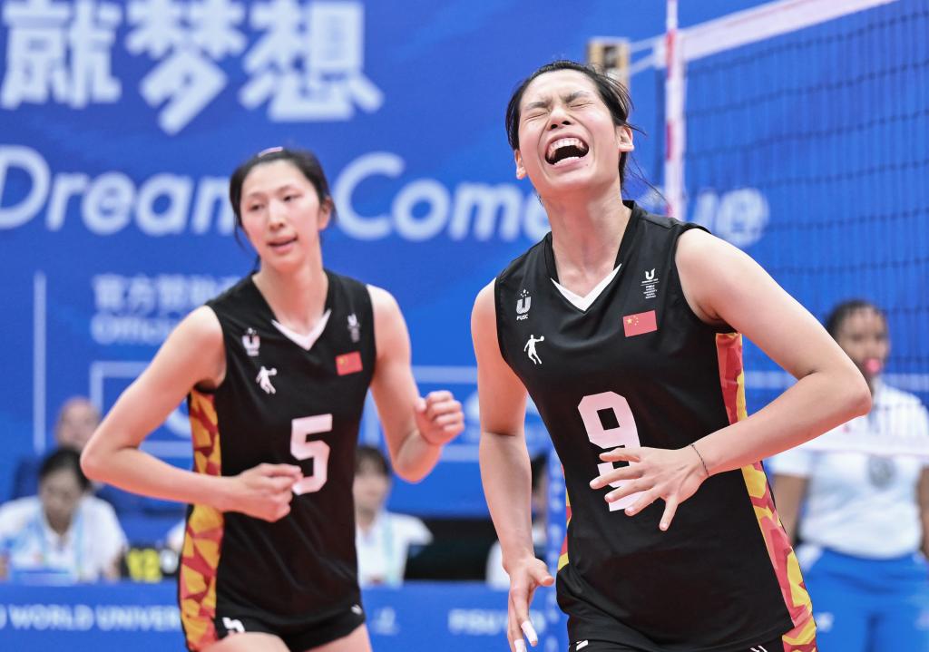 在成都大運(yùn)會(huì)男排小組賽C組的比賽中,中國隊(duì)以25:20、25:18和25:9擊敗烏克蘭隊(duì),贏得兩連勝的同時(shí)提前晉級(jí)八強(qiáng)。