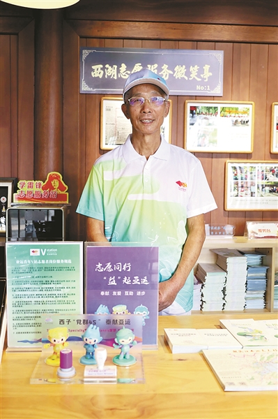 “不培訓(xùn)不上崗,不合格不上崗”,這是亞運(yùn)城市志愿者上崗的“硬要求”,也是景區(qū)志愿者做好服務(wù)的“金名片”。年過七旬的志愿者施志平,已經(jīng)連續(xù)在西湖邊服務(wù)了11個(gè)年頭?!白罱南词珠g怎么走”“音樂噴泉在哪里看”“西湖游船哪里可以坐”,這些問題他一天不知要回答多少遍,“馬上開亞運(yùn)會(huì)了,會(huì)有更多人來到杭州、來到西湖,我也希望能夠?yàn)楹贾荻嘧鲂┴暙I(xiàn)?!笔┲酒秸f,“最近我們也從年輕人身上學(xué)到了很多技能,尤其是英語,希望到時(shí)候能為大家提供更周到的服務(wù)?!?/p>