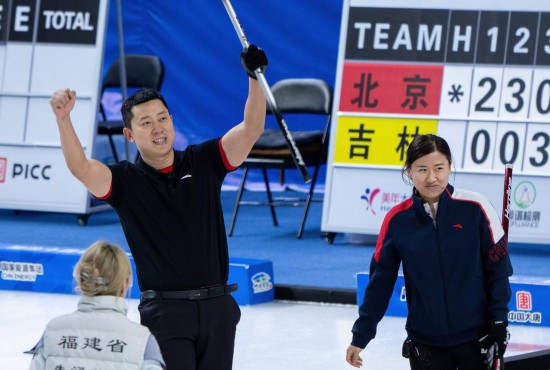 20日,在第十四屆全國冬季運動會冰壺(公開組)混雙決賽中,黑龍江隊以7:6險勝福建隊,奪得金牌。