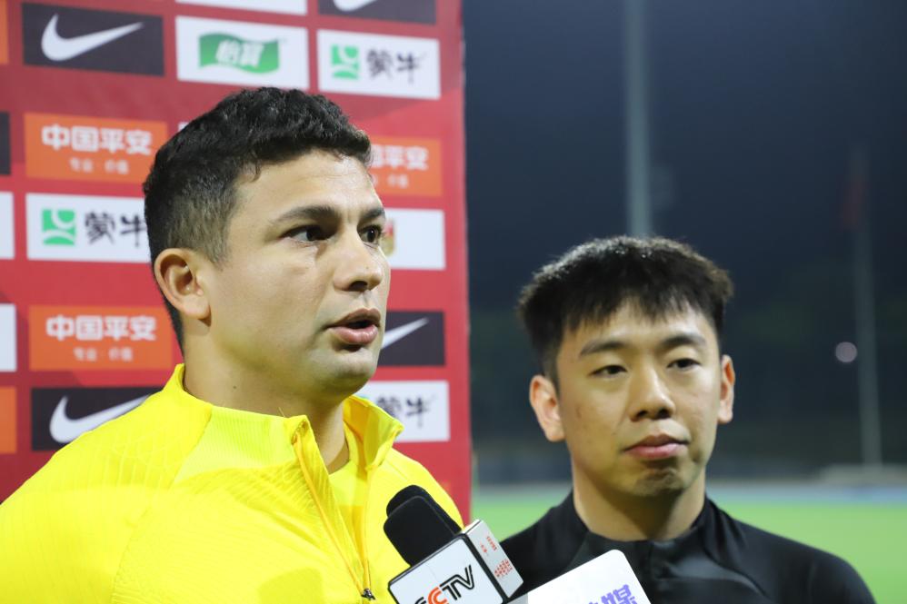 中國隊球員艾克森接受采訪(實習生蘇亦薇攝)
