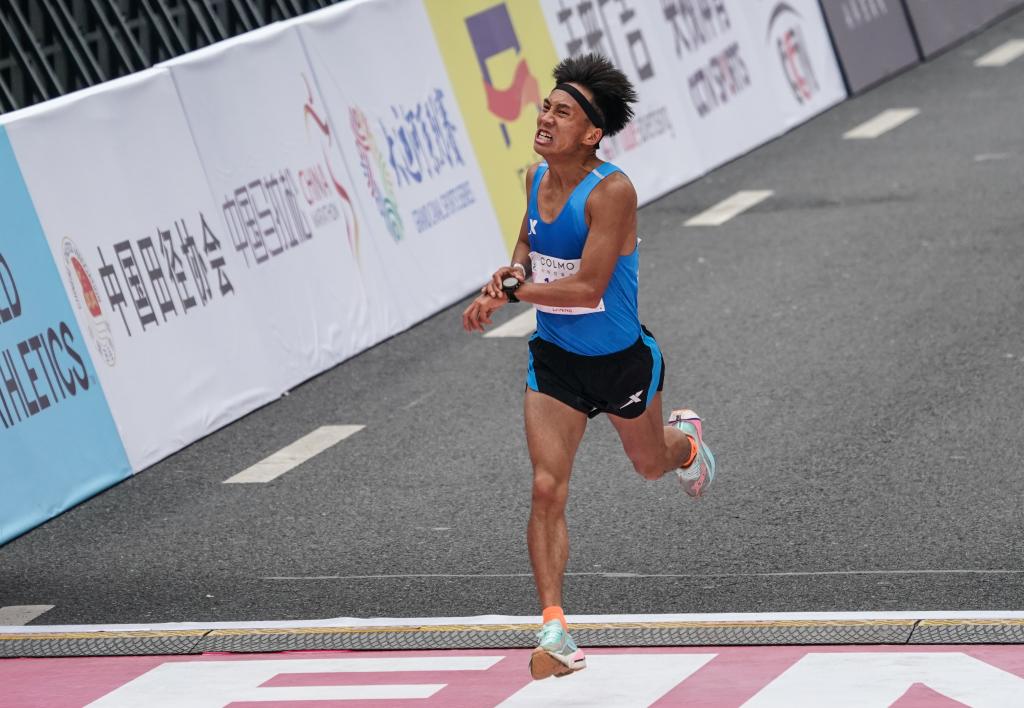 2023年3月19日,何杰在無錫馬拉松比賽中沖過終點(diǎn)。新華社記者 楊磊 攝
