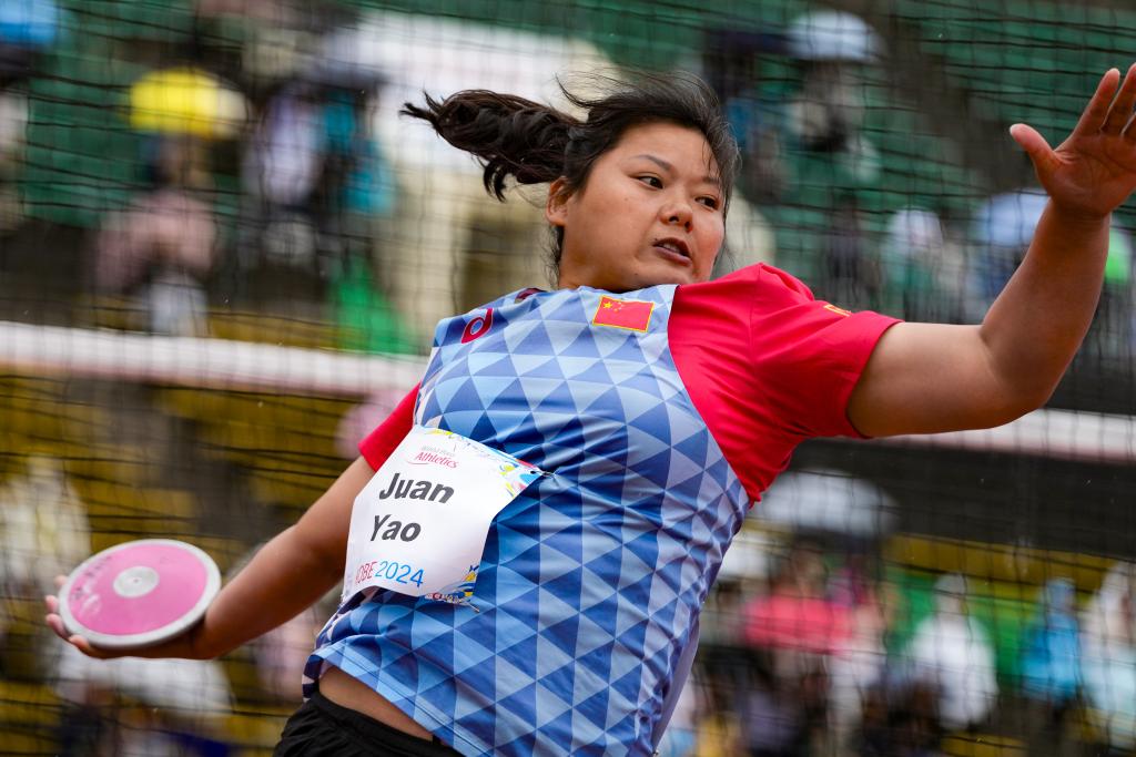 5月19日,姚娟在女子鐵餅F64級別決賽中。新華社記者 張笑宇 攝
