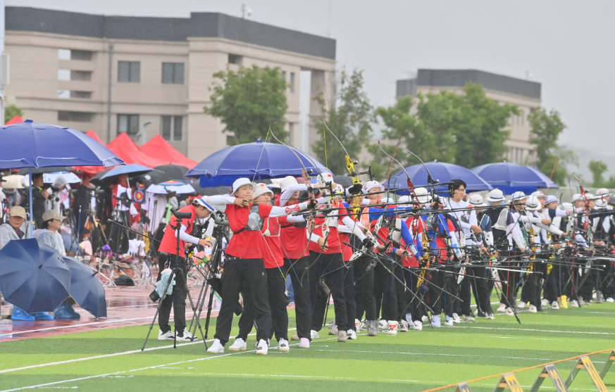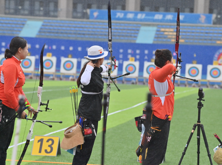 本次比賽共設(shè)置男子反曲弓個(gè)人、女子反曲弓個(gè)人、男子反曲弓團(tuán)體、女子反曲弓團(tuán)體、反曲弓混合團(tuán)體5個(gè)競賽項(xiàng)目。當(dāng)日比賽中,江蘇隊(duì)、天津1隊(duì)、吉林1隊(duì)暫列女子反曲弓團(tuán)體前三名,山東隊(duì)、上海1隊(duì)、廣東隊(duì)暫列男子反曲弓團(tuán)體前三名。