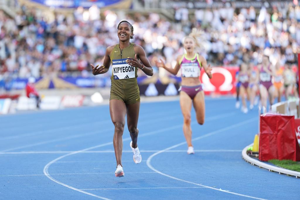 去年的鉆石聯(lián)賽巴黎站比賽中,基普頁真曾創(chuàng)造女子5000米世界紀(jì)錄。此次她參加的項(xiàng)目是1500米。在配速員的引領(lǐng)下,肯尼亞人前800米用時(shí)2分4秒,隨后配速員退出賽道,基普頁真速度不減,最終她以3分49秒04的成績(jī)率先撞線,將自己去年在鉆石聯(lián)賽佛羅倫薩站創(chuàng)造的世界紀(jì)錄提升了0.07秒。
