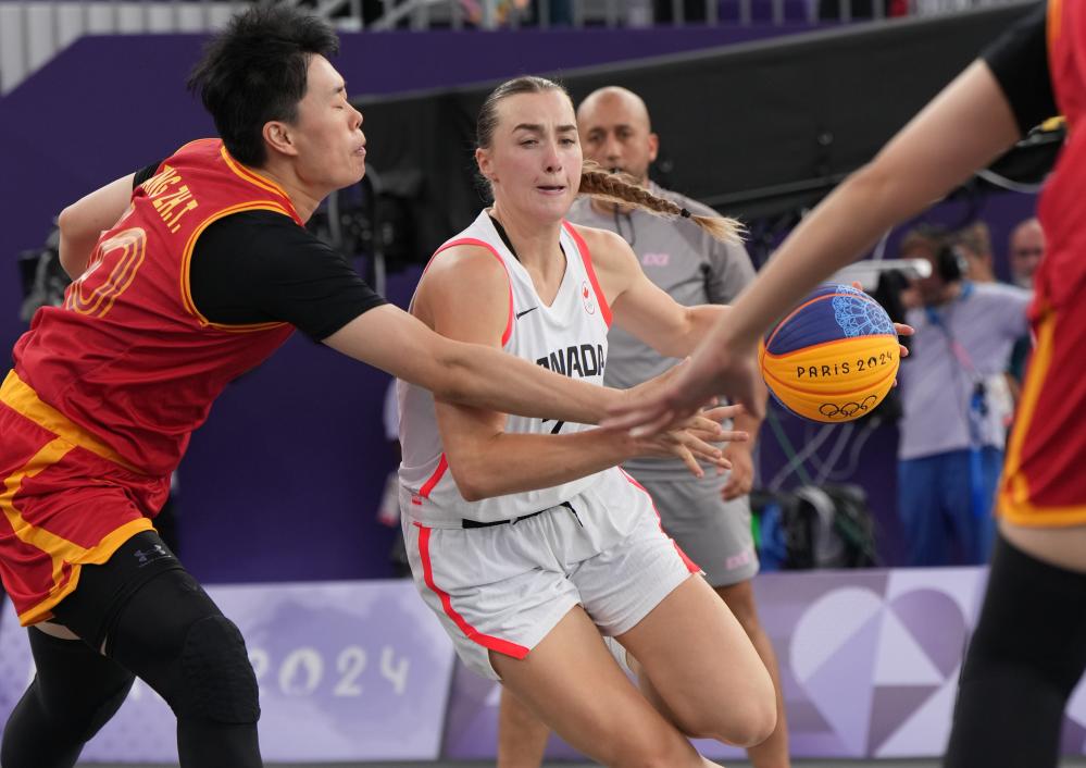 7月31日,加拿大隊(duì)球員克羅宗(左二)在比賽中突破。新華社記者 孟永民 攝